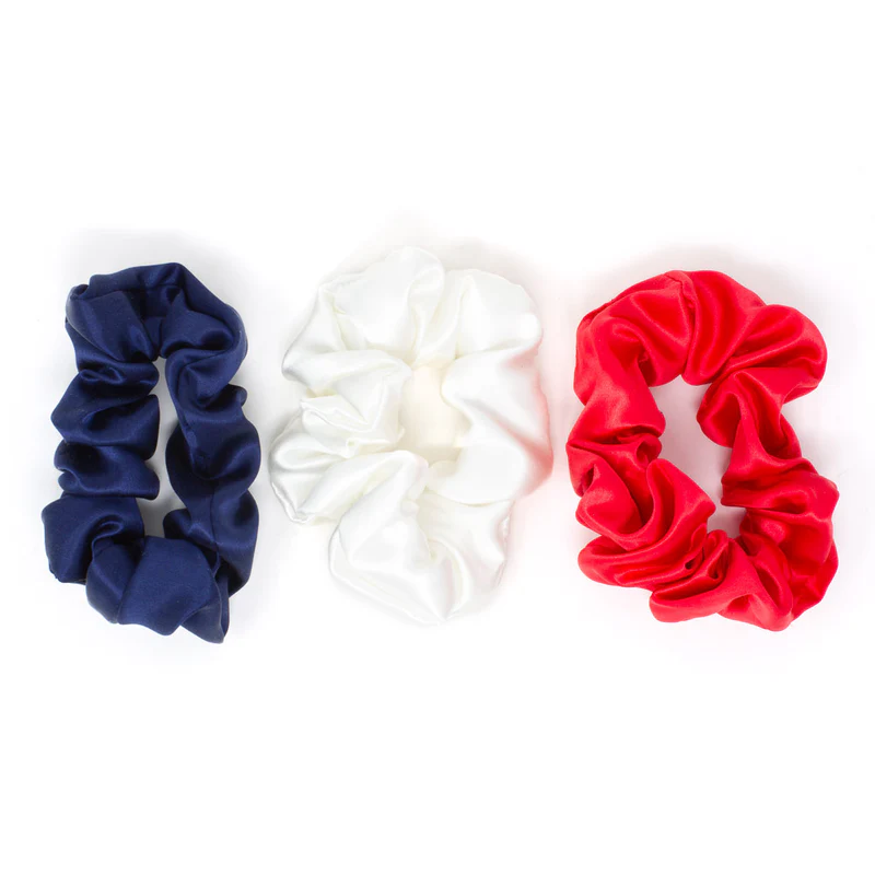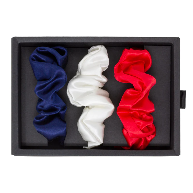 This Silk Scrunchie Collection includes multiple mulberry silk scrunchies in one set. Mulberry silk is one of the gentlest materials you can use on your hair—it doesn’t crease, snag, or cause the breakage that standard elastics can. Each scrunchie is made to last and can be rotated so you always have one on hand for the gym, office, or weekend.